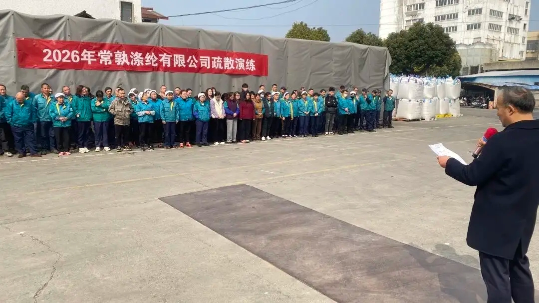 Kako bi se proveli relevantni zahtjevi Zakona o sigurnoj proizvodnji i Hitne vježbe za hitne slučajeve, te kako bi se poboljšala evakuacija i sposobnosti bijega zaposlenika u slučaju požara, Changshu Polyester Co., Ltd. je 11. veljače organizirao vježbu hitne evakuacije. Istog dana u 12 i 13 sati vježbu su uredno provele Divizija Poliester i Divizija Lida, au vježbi je sudjelovalo ukupno 357 djelatnika iz obje divizije.